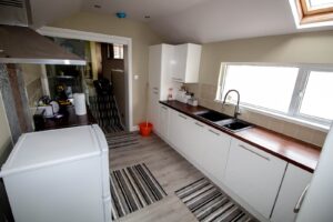 We installed a new kitchen, fully renovated all rooms, installed the new floors, a dormer, a staircase, insulation, and fitted a bedroom with an en-suite bathroom, doors, security and much more